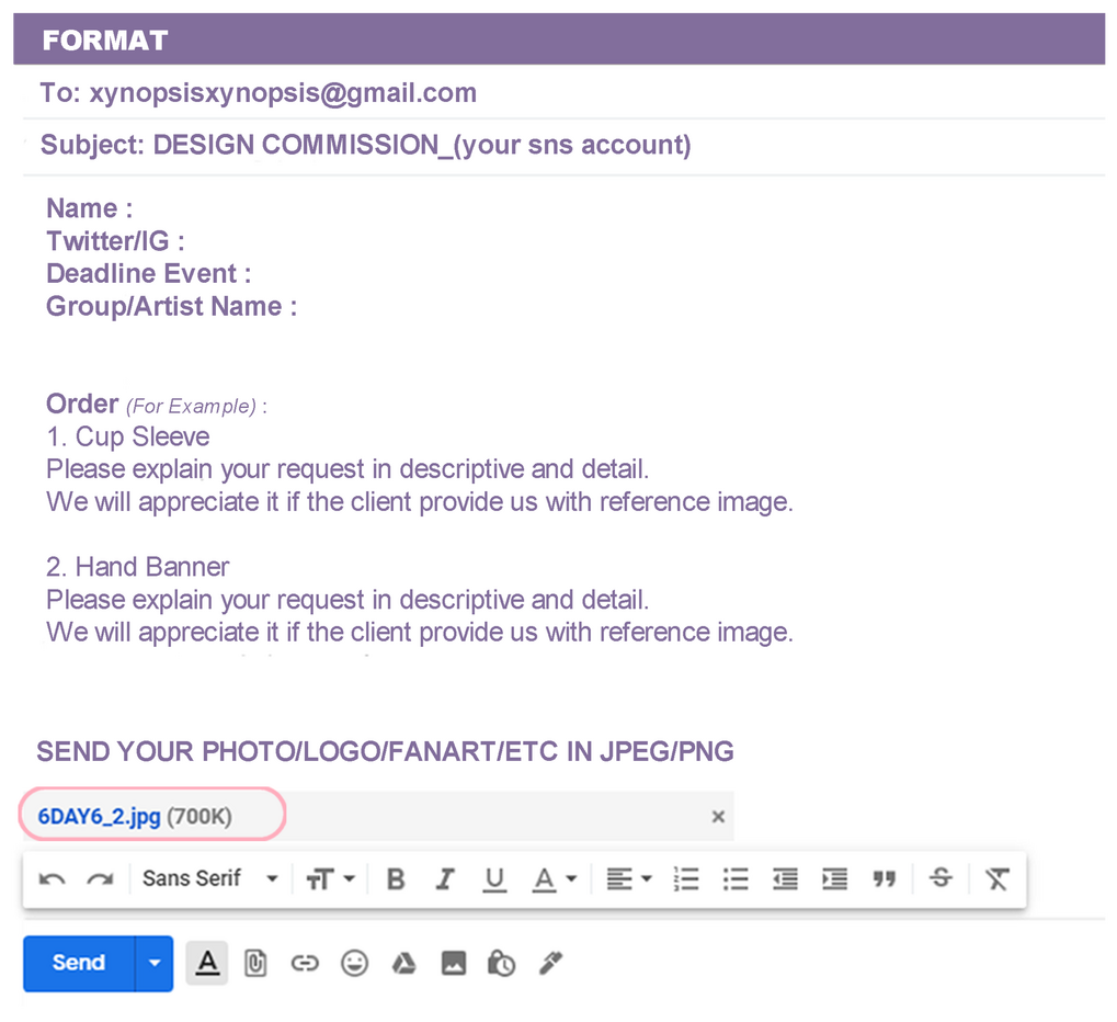 File will be send in JPEG/PNG format, additional fee will be charged for PSD/PDF file (for printing only).